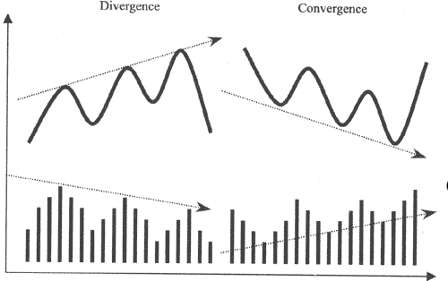 - Convergence คือ การลู่เข้ามาหากัน ลู่เข้ามาบรรจบกัน ในการวิเคราะห์เราจะหมายความว่า ทิศทางของราคา และทิศทางของตัวชี้วัด Indicator จะไปในทิศทางเดียวกัน
